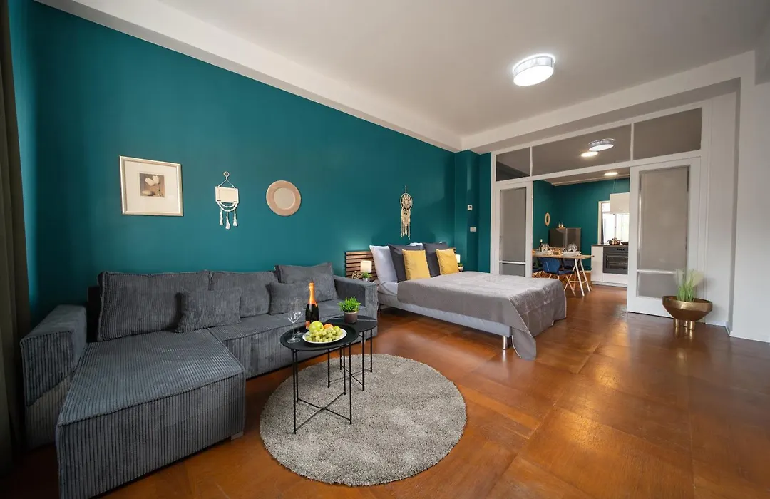 3B Bright Beautiful Newly Renovated 3Br Lejlighed ferielejlighed giver direkte adgang til Laterna Magica-teateret og har udsigt over haven. Beliggende inden for 10 minutters gågang fra Narodni metrostation.